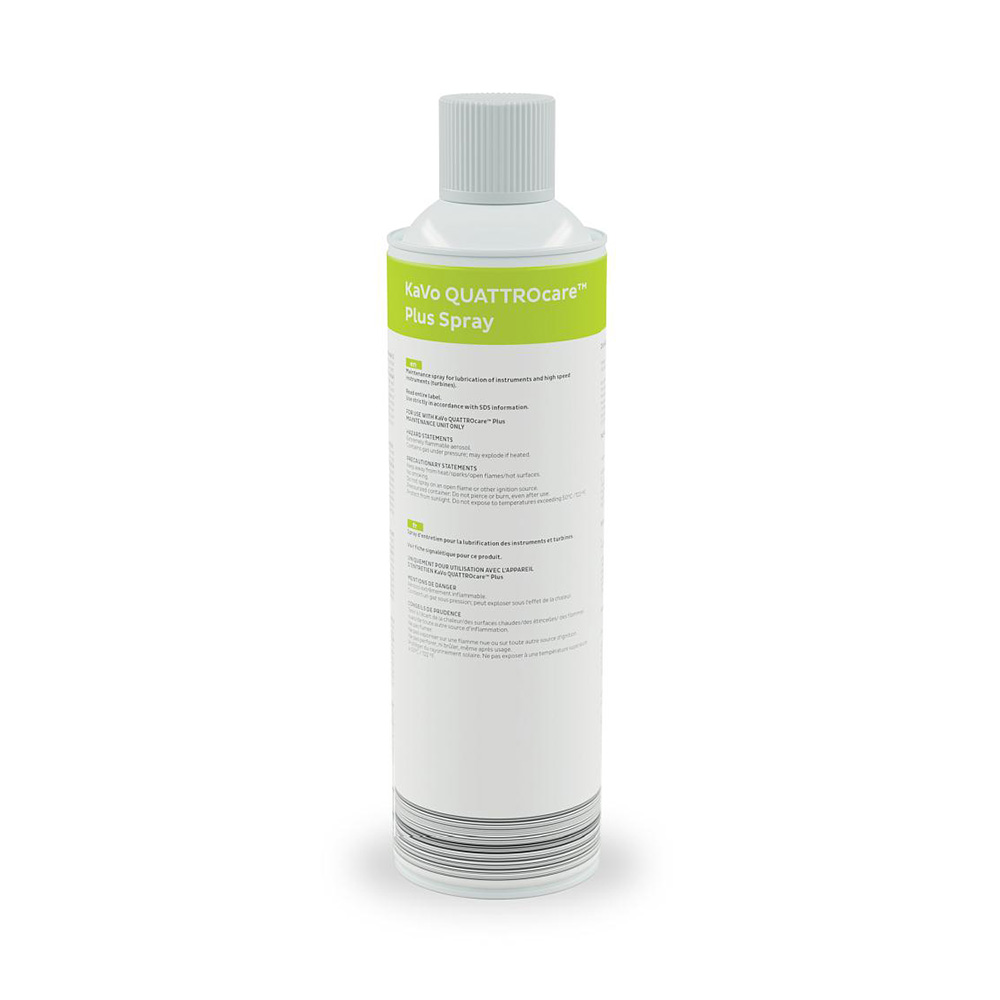 QUATTROcare Plus Spray 2140P er et specialudviklet pleje- og smøremiddel til brug i KaVo QUATTROcare Plus-systemet. Sprayen sikrer effektiv rengøring og smøring af klinikkens dentale hånd- og vinkelstykker samt turbiner. Dine instrumenter vil fortsat yde optimalt samtidig med at levetiden forlænges.