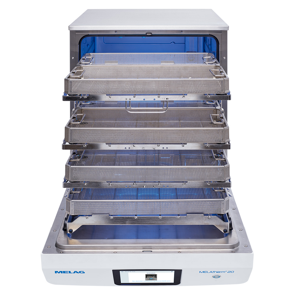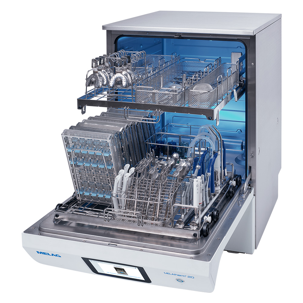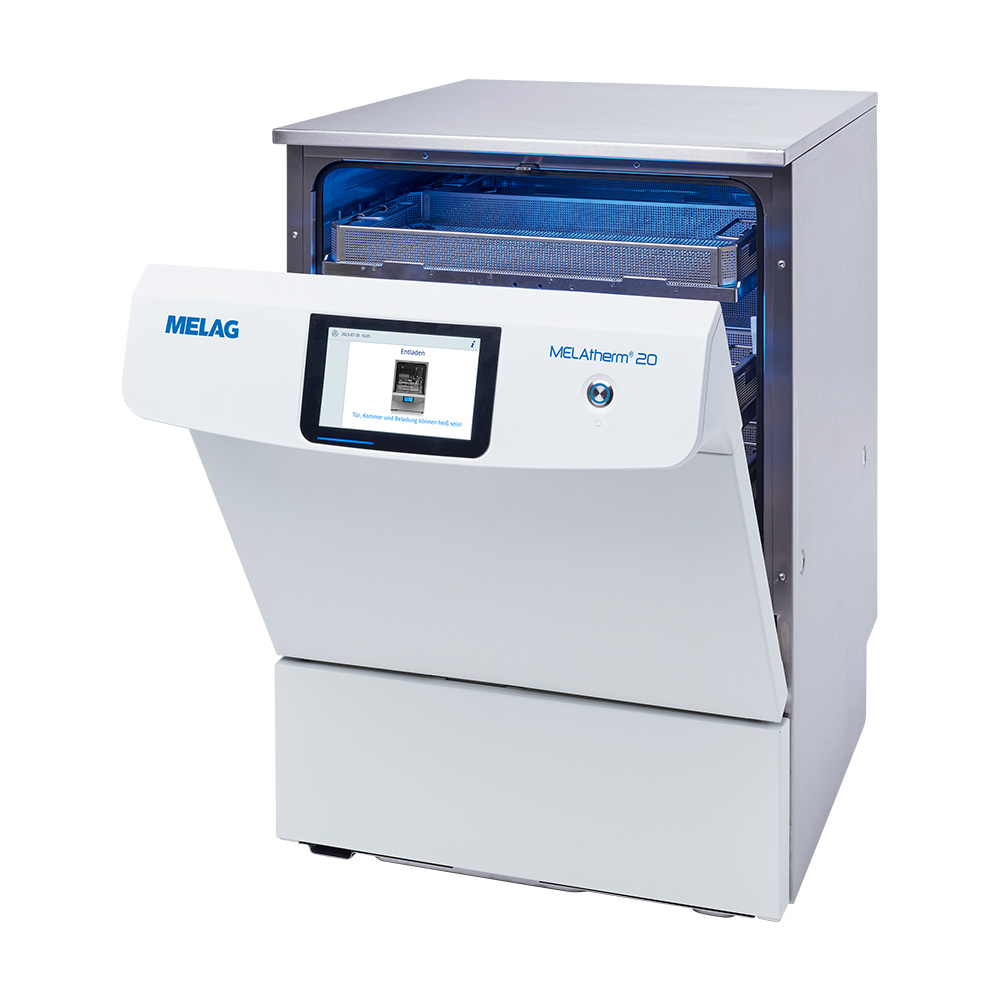 MELAG MELAtherm 20 er en kompakt og fuldautomatisk dentalopvasker, der sikrer pålidelig rengøring, desinfektion og tørring af instrumenter i tandklinikker. Dentalopvaskeren er udviklet til klinikker med høje krav til hygiejne, dokumentation og effektiv arbejdsgang – alt sammen i et pladsbesparende format.