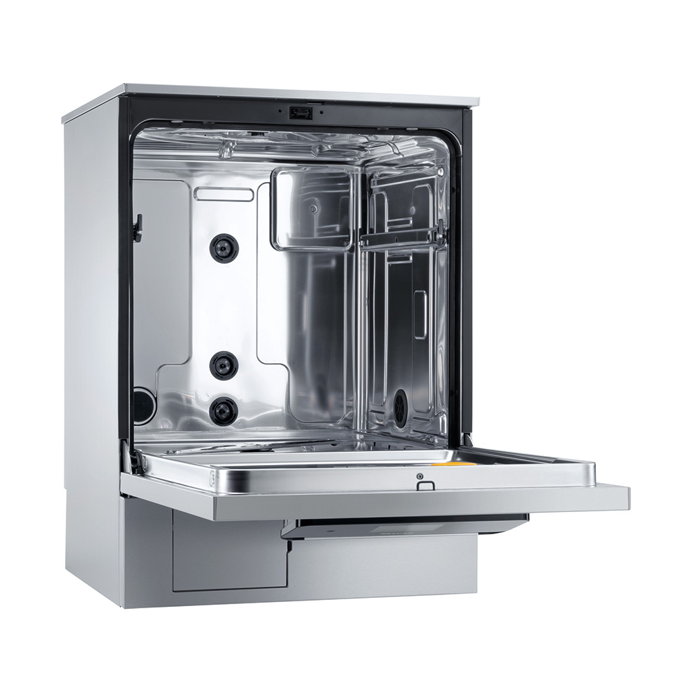 Rengøringsbeholderen uden svejsesamlinger sikrer en hygiejnisk indvendig overflade og forhindrer ophobning af snavs. Forskellige sensorer overvåger, at spulearmene fungerer korrekt, og at vandtrykket er korrekt.