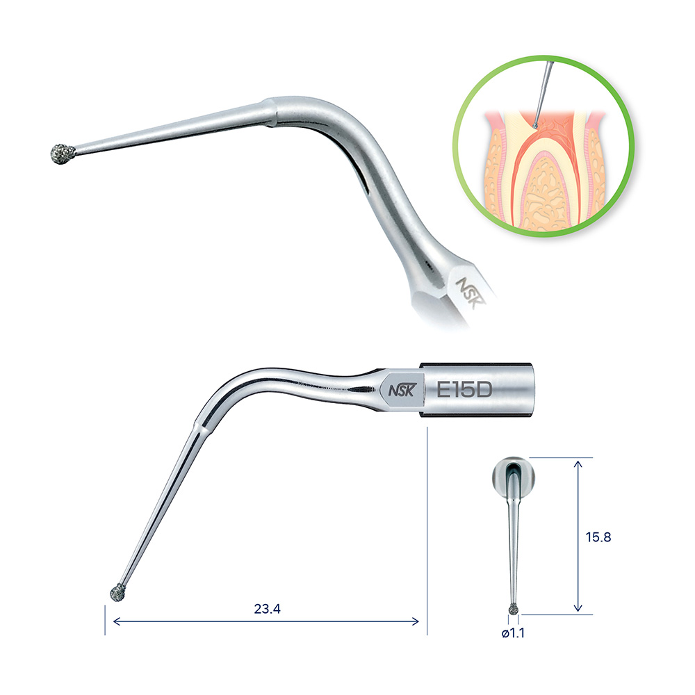 Diamantbelagt spids til lokalisering af rodkanaler og fjernelse af forkalkninger.