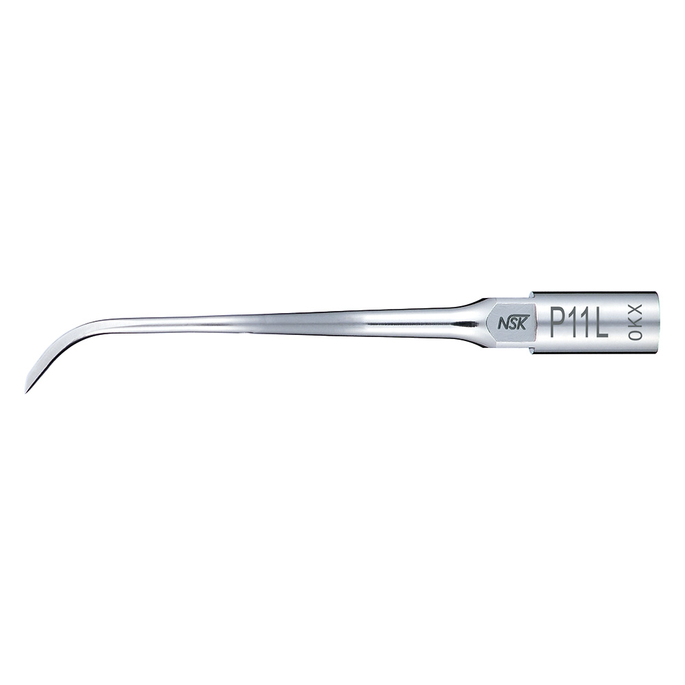 NSK Varios P11L Perio Tip bruges til fjernelse af tandsten og biofilm i dybe parodontale lommer og svært tilgængelige posteriore områder. Spidsen er venstrevinklet, lang og slank, hvilket giver god adgang uden at påvirke nabotænder. Den er kompatibel med NSK Varios og Satelec® ultralydsskalere og egnet til brug omkring implantater og følsomme tandstrukturer.