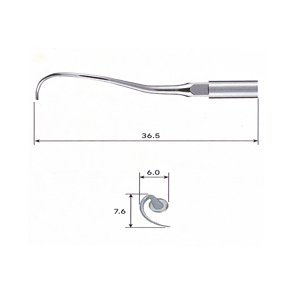 Højredrejet ultralydsspids, hvor kurveretningen bestemmes ud fra spidsen set forfra.