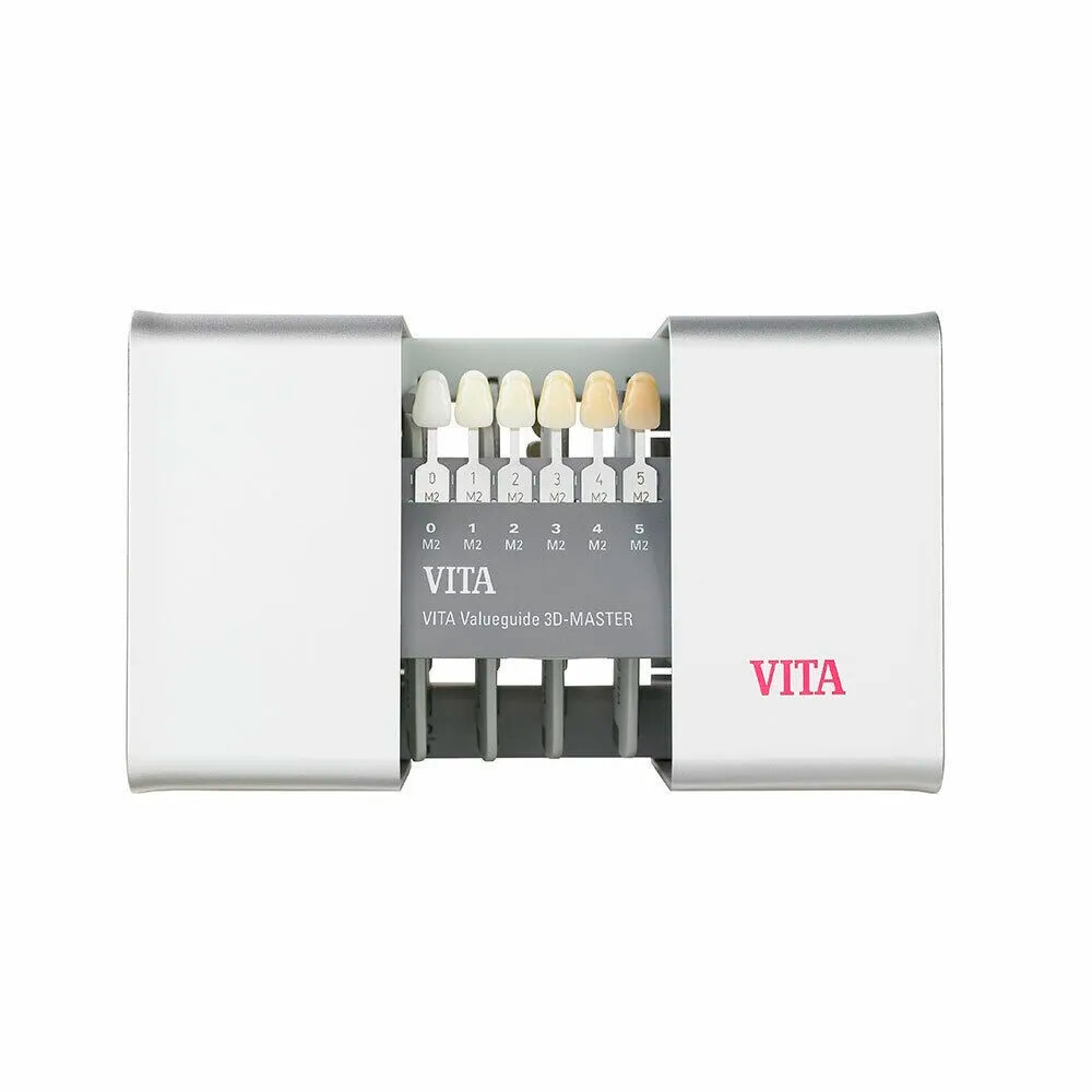 VITA Linearguide 3D-MASTER er en innovativ farveguide, der muliggør præcis og systematisk farvebestemmelse for tandrestaureringer. Med dens lineære struktur er det nemt at finde den korrekte nuance baseret på lyshed, farvemætning og farvetone. Guiden inkluderer et bredt spektrum af farvemuligheder fra VITA 3D-MASTER-systemet, som sikrer høj nøjagtighed og fleksibilitet i farvematchning. Den ergonomiske opbygning gør den let at anvende, både i klinikken og laboratoriet.