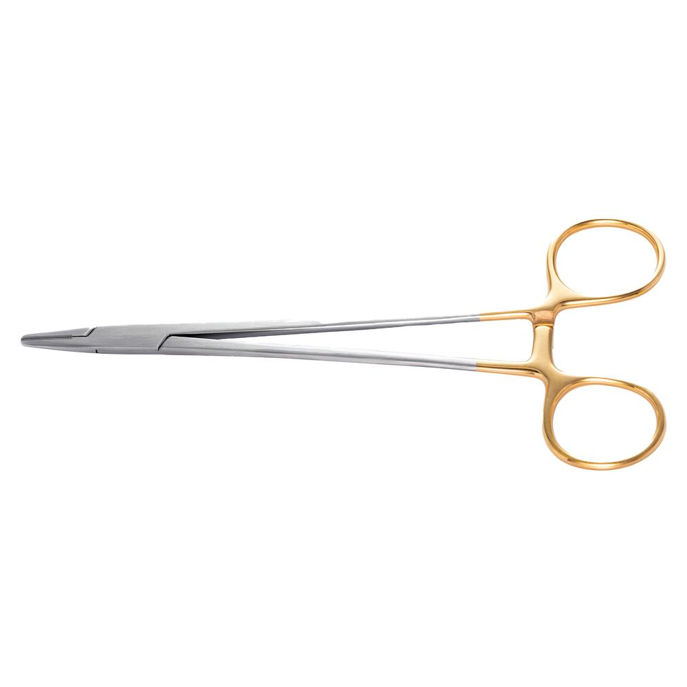 Mayo Hegar TC 18 cm nåleholder med hårdmetal kæber giver sikkert greb om suturnåle og minimal slitage. Instrumentets 18 cm længde sikrer adgang selv langt bag i munden. Passer til nåle i størrelsen 3/0–4/0.